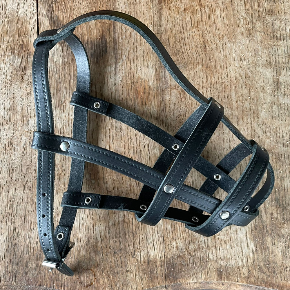 Deze leren muilkorf is geschikt voor honden met een maximale neuslengte van +/- 10 cm en een neusomvang van +/- 20cm.